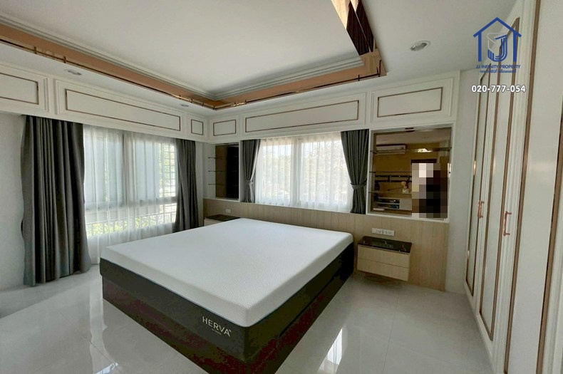 ตกแต่ง : เฟอร์นิเจอร์บิ้วท์อินทั้งหลัง,กล้องวงจรปิด,ตู้เซฟ,แอร์ 7 เครื่อง,เครื่องทำน้ำอุ่น 4 เครื่อง,ผ้าม่านทั้งหลัง,มุ้งลวดทั้งหลัง,เครื่องกรองน้ำ,ประตูรีโมท อัตโนมัติ.